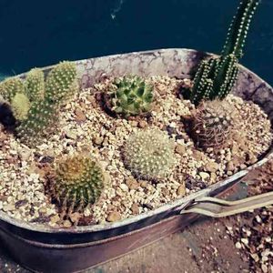 サボテン達を1個に 寄せ植えしました✩*.゚ 頑丈な(しっかりした)軍手を 買い忘れ、良くありがちな軍手で作業……( ºωº ) チクチクする……(笑) 慎重に作業しました!(笑) 自分的に大満足な出来 (*´﹃`*)