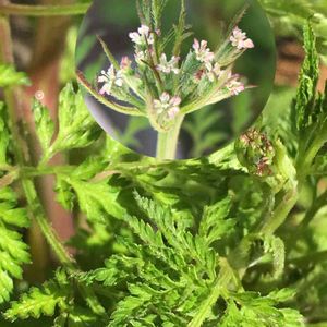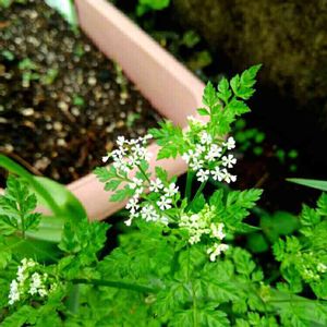 庭の雑草 背丈は20cmくらい 抜こうと思ったら、、 小さな小さな花が咲いてる なんだか抜けない😥💦 ➡︎@navyさんから「オヤブジラミ」と教えていただきました ありがとうございます😊🎶