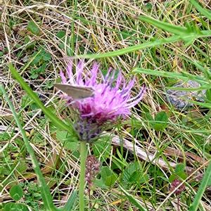おはようございます。 今日のお花のアザミと思っていたのですが、ちょっと自信ないです。 AIだとノハラアザミ、タムラソウ等いろいろ表示され。 肝心の葉があまり写ってないのですが、茎には棘がないようです。 2023/9月 北八ヶ岳ロープウェイの坪庭にて撮影