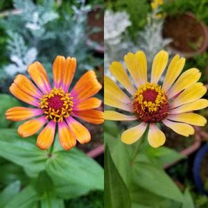 おはようございます。 皆様暑中お見舞い申し上げます‼️ 種蒔きからの ジニアカロッセル 色が、違いますが、同じ花です。 咲き進むと、色が、褪せてきています。 オレンジから、黄色に、これはこれでいいかな。 しっかり長く咲いてもう少しで、20日目に、なります。 大阪今28℃ 今日も暑い日に、なりそうです。 台風接近中の地域の方々 お気をつけてください。 鉢の移動は、済みましたか?