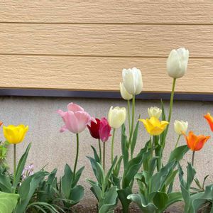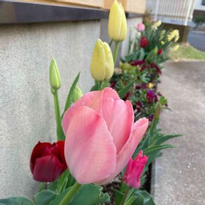 チューリップの歌みたいに並んだ🌷 オレンジ色のチューリップが最後に咲いてよりカラフルになりました😻