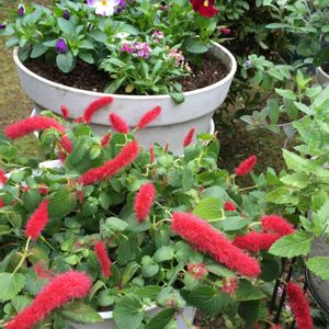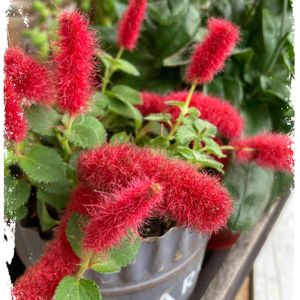園芸店で一目惚れしたキャットテール😻 赤いモフモフがめちゃ可愛い❤️ リメ鉢に入れてみました