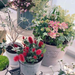おはようございます♫ 雨上がりひんやりとしています。 先日🍁🍂秋の寄植え🍂🍁を作りました\(^o^)/ 少しずつ秋冬のお花へ移行させていますが、春夏のお花がまだ元気なので片付けられていません💦 お庭では、猛暑に負けない✨ビタミンカラーの眩しさから、暖かみのある🍁色合いのお花たちが増えてきて、紅葉🍁も進んできました。 優美なバラ🌹 華やかなリーガスベゴニア。 元気いっぱいの黄色のミニガーベラ。 色とりどりのキャンドルのようなセロニア。 ふわっとした毛布のようなキャットテール😺💓 それぞれの個性が引き立ち癒やされています♫
