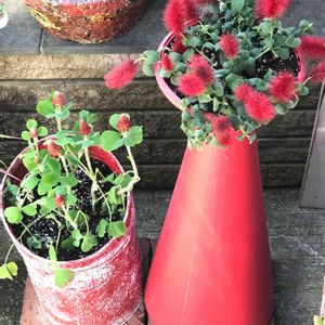 今年のお庭はこれで決定🙆 トリフォリウムバニーズを大きな鉢に移して、ようやくスノーサンゴを鉢に植えました👏 でもスノーサンゴとっても弱ってしまって、葉がボロボロです😭 調べると実がなってる間は肥料はあげないほうが良いみたいですが、葉があまりにボロボロで…それでも肥料はない方がいいんですかね…?💦 奥にはまだ双葉のバジルがいます🌱 こちらもまだ成長の見込みがありません… 手前の去年からの挿し芽キャットテールも大きくなる様子がありません😖 どうか枯れないで皆元気に育って欲しい😭 バーベナは順調に綺麗なお花を咲かせてくれてます🌼
