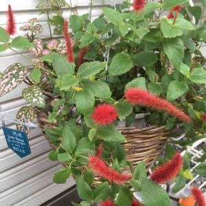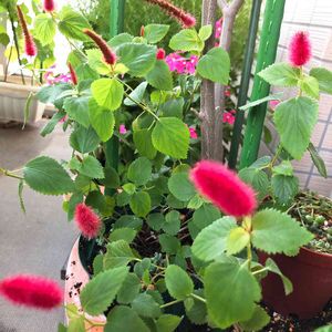 キャットテールとヒポエステス。 赤い小さな花が、キャンドルの火のようでかわいいです🙂