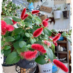 赤いシッポ(キャットテール)が咲き始めました🎶 もう10年以上我が家のベランダに住んでおります😁
