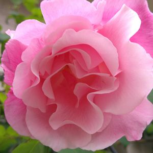 今日のバラ① つるバラのスパニッシュビューティー。 ひなあられのような鮮やかなピンク色で、フリルした花びらで可愛らしいです😍 そんな可愛いお花と対象的に、ものすっごいトゲがあります。トゲが鋭く長めで、よく服を引っかけます。バラのトゲって釣り針の返しみたいになっているから、引っかかったら一度後退するとわりとスルッと取れるんですが、フーフー言いながら重いプランターを持って移動している時に引っかかると、面倒だから強引にえいやっと進んじゃったりしてビリッといっちゃいます。なので、私の園芸用のウインドブレーカーはビリビリに破け、何度かミシンで縫い合わせてます😅💦