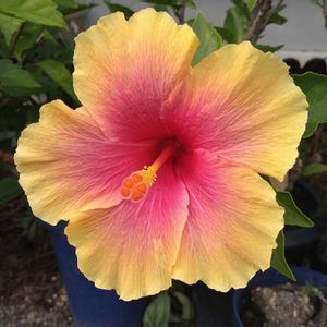 ハイビスカス ミセスユミ🌺 今朝、咲いてました➰ 2番花3番花、同時に開花🌺 暑いだけで疲れますね😓 今日も一日お疲れ様でした🙋♀️