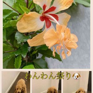 バトンハウスさんの🏷ワンワン祭り🐶に参加させていただきます▽^ェ^▽ ワン! ちょっと前に娘の家で飼ってるカロンの1歳のBirthday🎂でした💖 写真を撮る為なかなかヨシ!って言ってもらえなくて😆早く食べたくてしょうがないカロン😂かわいい〜(≧∇≦*)♥️ 今日のお花ハイビスカス🌺 昨年お値打ちだったのでお迎えしました💛 冬越し出来て沢山咲いてくれてます💛🧡