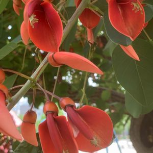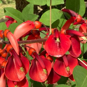 カイコウズ(海紅豆)は、鹿児島県の県木に指定されている南米原産のマメ科の木です。 梅雨から秋にかけて長さ4〜5cmの赤い花を付けます❤️ 鹿児島では街路樹や公園の植栽で多く植えられています。 緑と赤のコントラストが南国情緒❤️💚 大木と出会いました。大好きなので2回目の投稿です😍
