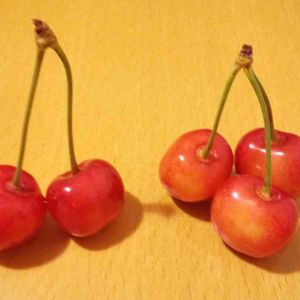 6/22 故郷からのサクランボ バラの中に殆んど1粒ですがふたつととみっつ 見つけると得した気持ちに なります…