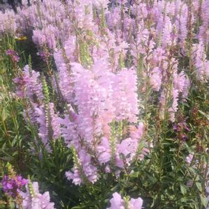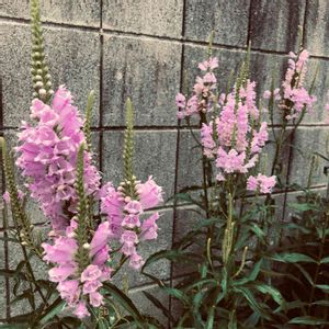 仕事の帰り道の住宅街のブロック塀沿いにピンクのハナトラノオが咲いていました。 (*´∀`*)