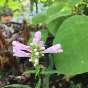 薄いピンク色の花が古民家の裏庭に咲き乱れていた。ハナトラノオです。