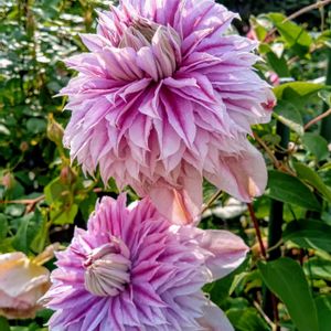 おはようございます。 我が家の八重咲きクレマチス、咲きました。 薄紫色がお気に入りです💜