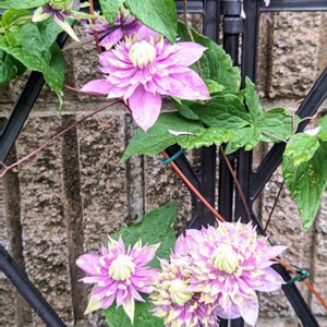 おはようございます🤗 ✨クレマチス✨ ご近所さんの庭先に咲いている八重咲きクレマチスです。 三枚目は娘からの母の日のプレゼントです😊