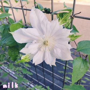 クレマチス・白万重 本当に良く咲いてくれています。 花付きよく、想像していた以上の八重咲き(万重咲き)です😌