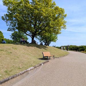 【火曜ベンチとブランコ】 ①木の隙間からおひさまが見えます 静かに吹く風とメタセコイアの茂みが好きです ②潮の香りに誘われて いつものベンチ お天気が良かったので 気持ちよかったです ③オオシマサクラに結びつけてあるブランコ ④「優しく乗ってね」 座るとロープがミシミシ音がしたので枝が折れたらどうしょうと心配でした 2分くらい静かに座っていました 消して揺らしませんでした💦