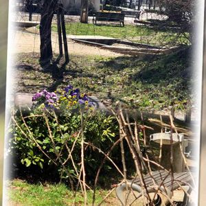 お初🏷「火曜ベンチ」 横浜のフランス山公園や気象台の近くの公園 「グラフ99ガーデン」のベンチです 過去何回も家族と座って🤳撮りました いつも綺麗に整備されて季節の花も綺麗です 後ろは赤花マンサクかな❀.*・゚ ベニバナトキワマンサクと教えて頂きました🌸🌸 咲く季節が ベニバナトキワマンサクの方が 暖かくなってからですね😊🌸