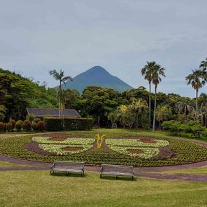 植物園の一角─ 山麓をバックに、 お花で蝶々🦋をアレンジ⤴️😘 お目当てのベンチを見付けて👀💡 早速、「火曜ベンチ」に参加します🎵