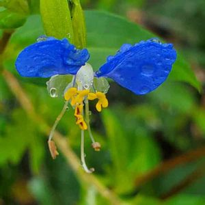 ツユクサ とても久しぶりの朝からの☔に濡れたツユクサ