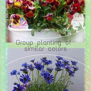 ビオラの寄せ植え 同系色で 纏めてみました😊 ブルーのお花は 💙フェリシア💙 キク科 フェリシア属 種からのフェリシアさんも 咲き出しました‥😆
