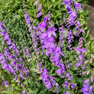 近所の方からいただいたのですが 花名がわかりません😅⁉️ 花名教えてください🌸🤗 花名教えてくださった皆さんありがとうございました😊 「ハタザオキキョウ」について学習しました😊‼️ ハタザオキキョウはヨーロッパ原産のキキョウ科ホタルブクロ属の宿根草です。 花言葉は「清楚な美しさ」 花名の由来は、ハタザオ(旗竿)にキキョウに似た花を連ねてつける様子からだそうです🤗‼️