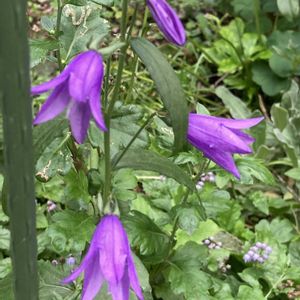 ハタザオキキョウ💜 別名: カンパニュラ・ラプンクロイデス 今年はドウダンツツジの根元にみっしり、いい感じにグラウンドカバーの役目を果たしてくれそうだったのですが、葉っぱが白っぽくなり始め、次々に枯れてしまいました💧 最近知ったのですが、この植物は外来種で、祖国では駆除対象に指定されるほど繁殖力旺盛だとか.....🧐 うちの庭はお好みではなかったのね😔