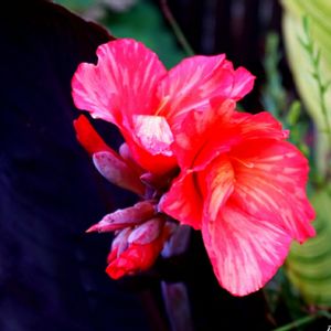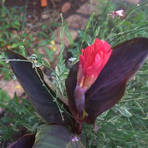 我が家の熱帯植物地帯より🌴🌿 この、どす黒い葉っぱに、鮮やかな花🌺のコントラストは、いつ見ても異様な雰囲気です😅 でも、見慣れると…目立って面白いかも♪😉