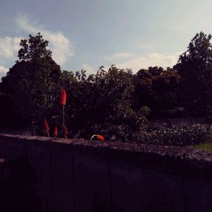 西日がピークでした。 PM3:52です。 塀の向こうに‼️。 いつの間に こんなに高くなったのかしら😀。(*⌒∇⌒*) 🍀切実な思い🍀 そんな花言葉に 頷いています。 拡大して見て ネ。