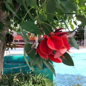 アメリカ梯梧 アメリカデイゴ マメ科 海外から来た赤い豆の意味で 海紅豆(かいこうず)の別名があります。 トルコ🇹🇷 カシュのホテルの庭で。