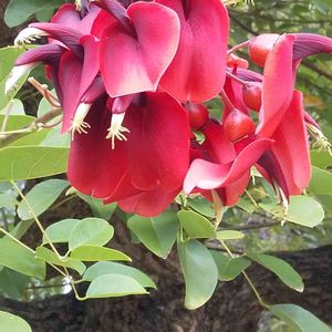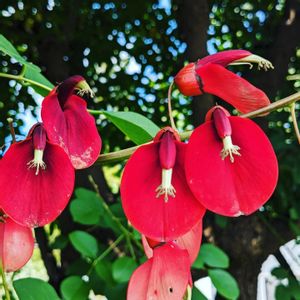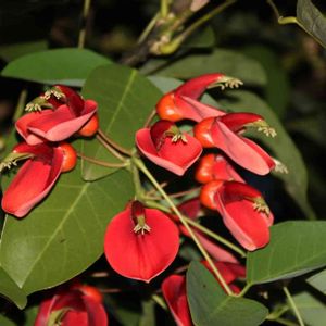 近くの公園に植えられているアメリカデイゴは 目立つ蝶形の真っ赤な花を咲かせます。 南アメリカの原産で 日本には 江戸時代に渡来したのだとか…。 花後には マメ科特有の鞘(さや)を付け 中に1cm位のコーヒー豆のような種が5〜6個入っています。 真っ赤な花と濃い緑の葉っぱのコントラストがとても鮮やかで綺麗ですね。🤗✨ ブラジルなど南アメリカ原産。 マメ科デイゴ属の落葉高木。