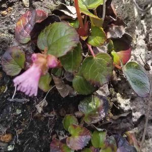 山野草です☺️名前⁉️分かりません😭 岩うちわ⁉️ 石を少し削りケド土使い 植えて何年でしょうか 毎年、咲きます😍