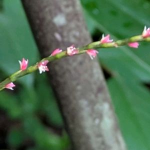ミズヒキ(水引)❇️💓❇️💓❇️💓❇️ 庭のグリーンの中で、 細長い花序の小さな小さなお花が可愛らしいです💞 近付いてよく見ないと見落としてしまいそうなお花です🌸 撮るのも難しくて、可愛さが十分お伝え出来ないのが残念ですが😂