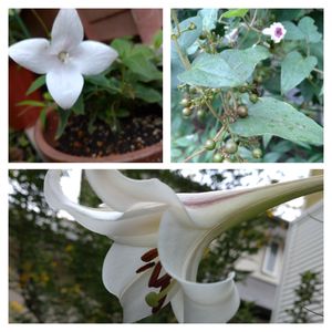 今日見つけた我が家のお花たち 桔梗はピンクのはずだったのに白になってました