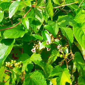アオツヅラフジと同じく満天星に絡んだヘクソカズラは お花も殆んど落ちて緑の実が出来始めているようです これから段々飴色になっていくのが楽しみです 秋のシックな装いにこんなロングネックレスは如何ですか? 🏷グリーンアクセサリー♪…に!