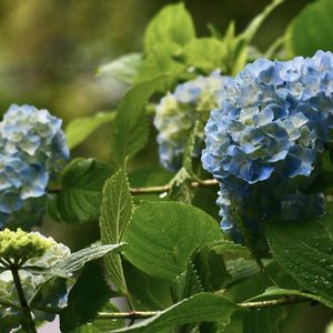 トリトンさんの 🏷️アの付く植物 に参加します 青いアジサイがだいぶ色付いてきました🎶 今朝の☔️がお似合いです
