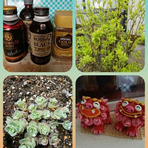 こんにちは👋😃 晴れてるけど寒くて寒くて💦 シ-サ-オリオン祭りに参加させて頂きます🎶 私の飲み物は主にブラックコ-ヒ-とお茶☕🍵 缶コ-ヒ-は頂き物ですが家で飲む事はなく 冷蔵庫に入りっぱなしです😅 左下はこの前きゅうちゃんから頂いたミセバヤ🌱 地植えにしたらすっかりミドリンですが綺麗に 育ってます🌱🌱🌱 右上は我が家の日陰の庭のユキヤナギ🌿 日当たり悪いから花が咲くのはよそのお家のが 咲いて散る頃です😅 シ-サ-は前回と同じ娘の家にあるシ-サ-を📸