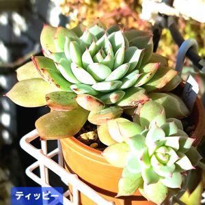 おはようございます😃🌤 ティッピー💚💚@軒下の多肉棚🗼 朝から日射しマックスのVIP席、時々入れ替えがあります🎬 よい一日を🐬.。o○🌈🌏