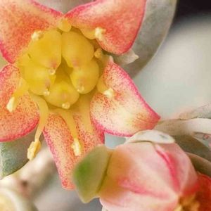 ざっと見ればティファニーブルー ズームしたらやや蒼白い灰色 あと二週間で発芽から一才になります 今まで自分で受粉実生から育ったオリジナル交配種の中 断トツ元気良く成長速度が早い子 葉挿しも極めて安定 実生時の淘汰率もとても低い これが相性の良い多肉の間で生まれた次世代という訳なのか... すごい!(*๓´╰╯`๓)♡ (初めての交配種スプリングサンダーと春雷はあまりにも気難しいのじゃ...) ↖️葉挿し 実はちょっとピンク紅葉できるのようです ↗️水控えの姿 かわいい ↙️成長点と下葉の中間が少し柔くなったら 水やりする全力成長ちゃんたち ↘️今度こそ本当の花芽のようだ ۹(๑•̀ω•́ ๑)۶ 一才前で花芽伸びちゃうなんで 4月前で咲けるのならば あぬびす交配種の交配種出来そうだ💖💖💖 セカンドジェネレーションだ ヾ(@^▽^@)ノ