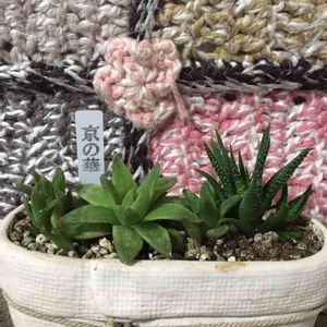前回の投稿の続き♪ 本日大阪は 八尾と堺の二軒の花屋さんをはしごし ハオルチア5つと虹の玉をゲットしました(*´∇`*) 手前真ん中は 憧れの巨大赤線オブツーサ 右端大きいオブツーサは 魔王オブツーサです!! 爆買いしちゃった(^^) 虹の玉はあまりに可愛いので 買ってしまいました。 明日からの目の保養が増えました。 ニコニコしながら生活を送れそうです(*´∇`*)
