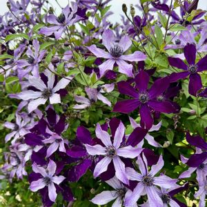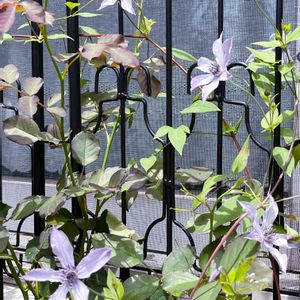 雨も上がり曇ってますが、過ごしやすい朝です。 ✿¨̮ クレマチス 流星 ずっと探していました。 ご近所のご年配の方がバラとクレマチスが好きで仲良くなり、我が家のバラもいくつかお嫁に出したりしてます👰 先日 お庭訪問すると、バラの陰でひっそりと弱々しくツルを伸ばす流星を発見👀 流星について熱弁してると… そんなに興味無いのかな? 持っていく?と聞かれ、即答「はい🙋♀️」 今の時期の植え替えって不安でたまりませんでしたが、無事花を咲かせました🙌 藤色の花が涼し気です🎐 その方、ちょうど横浜流星くんをテレビで見た後にお店でクレマチス流星を見たので買ったのだとか🤣 今日の最高気温28℃予想☀️ 今から暑くなるのかな😂