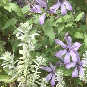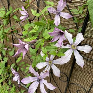 クレマチスの流星⭐️✨ この藤色と銀色が混ざった感じの渋いクレマチスが好きです💜 バラの肥料をあげてみたところ、今年は花付きがよくなりました。
