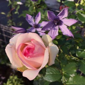 ピエールドロンサールの2番花とクレマチス 流星です。 流星は咲きだすとずっと咲いているのですが最初の花が遅咲きなので、ピエールドロンサールの満開には間に合いませんでした。 遅咲きのバラと合わせると良いのかもしれません。
