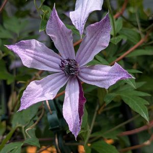 こんにちは♪ よく晴れて暑いです🥵 ずっと欲しかった クレマチス 流星🌠 今年やっとお迎えできました🥰 まだ花弁数が4枚だったり… 株が充実するまで〜あと少しかなぁ 涼しげな色合いがキレイです😍