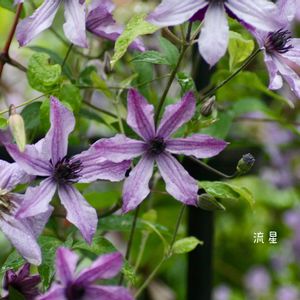 おはようございます😊 今にも降り出しそうな朝です☔ クレマチス達。 流星、ロマンティカ、パープレア、クリオネ、水面の妖精