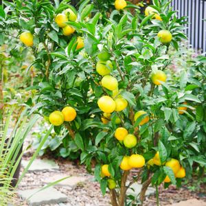 3年目にして、美味しいミカンがなりました😋 pic を撮ったら、木の幹の下の方にタグが付いているのを発見☀ 温州(うんしゅう)みかん、「日南の姫(ひなのひめ)」、名前は今回、初めて知りました。GSのおかげ😉 ミカン科ミカン属。 学名:Citrus unshiu(ウンシュウミカン) 昔からあるミカンの木は皮も薄く、甘みも酸味もあり、とても美味しかったのですが、娘の家を建てる時に、トラックを通すために、やむなく切りました😭 その後、園芸店で苗木を見つけ、買いましたが、苗木になっていたミカンは美味しくなくて、失敗だったかな?、と思っていましたが、3年目の今年は、まだ私の背丈ほどですが、綺麗なオレンジのミカンが30~40個なり、しかも美味しい \(^o^)/ 名前が分かったので、ネットで検索。 1本で結実できる自家結実性。 「日南の姫」は宮崎県を代表する早生種で、人気の高いブランドの一つの「日南1号」の枝変わり品種で、極早生品種とのこと。 やや大きめのサイズ。 糖度が10~11度と比較的高い糖度、程良い酸味もあり👍 外皮は鮮やかな橙黄色で、果肉も鮮やかな色合い。 極早生品種は、早く収穫するので木の負担が軽く、毎年よくなる、とのこと。そうだったんだ~👍 追記:雑草取りが大変なので、一念発起して、芝止めのレンガをぐるりと縁に敷き、南の花壇を掘り起こして雑草を取り、防草シート(1m×10mを1枚、50cm×10mを2枚)を敷き、生チップ(エリィさん、アドバイス、ありがとう❤️)をその上に敷きました。大変だったけれど、やりがいがあったので、終わったときはロスになりました😉