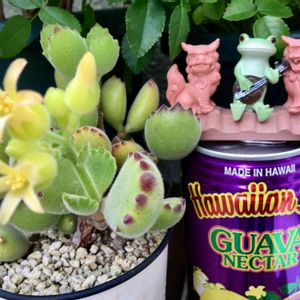 🍉夏休みだ!シーサーオリオン🌺祭りに参加します😄 🌿熊童子🌿 熊ちゃんのお花が咲きました🌼 お爪が日焼けしてワイン色❤️ オリオン🍺なくてトロピカルなグァバジュース🍹で参加します🤗