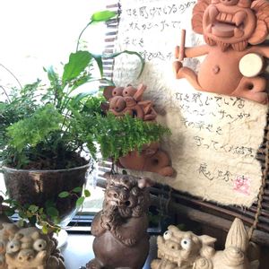 皆さんの投稿で 夏休みだ!シーサーオリオン 発見🎶参加させて下さい🎶 我が家のシーサー達を集合😊 真ん中のお願いシーサー、大好き💓 オリオンビールは、ないけど大丈夫かなぁ?