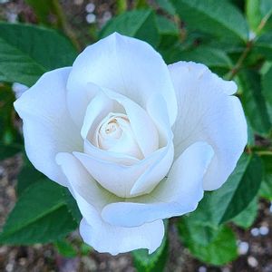 薔薇・アイスハーグ •*¨*•🤍.¸¸❀*・゚•*¨*🤍•.¸¸❀*・ 清楚で素敵な薔薇に癒されます⋆⸜(´˘`*)⸝♡ꕤ*.゚ 品種名:Iceberg(アイスバーグ) 花色:白 花形:丸弁咲き 花茎:中輪 7〜8㎝ 咲き方:四季咲き 香り:微香 ティ香 樹高:120〜150㎝ 樹形:木立性
