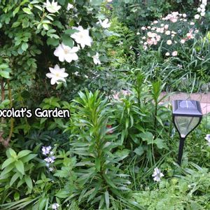昨日の裏庭 グリーン多めの初夏の風景が好き〜💚 今朝庭パトしましたが、デルフィニウムとアンジェラのシュートが折れた以外は大きな被害はなかった様です。 暗闇で支柱を立てた甲斐がありました。